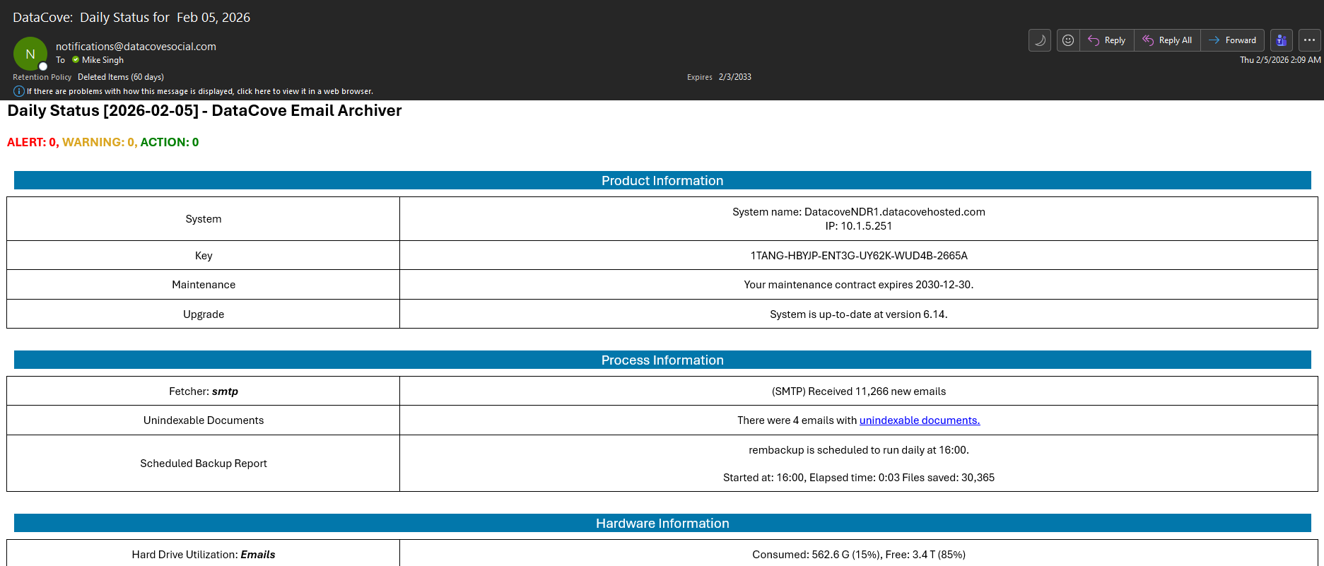Email Notifications have been revamped with graphical representation for any alerts or suggestions for easier identifiability, along with additional tests being performed for improved alerting to the system administrator.