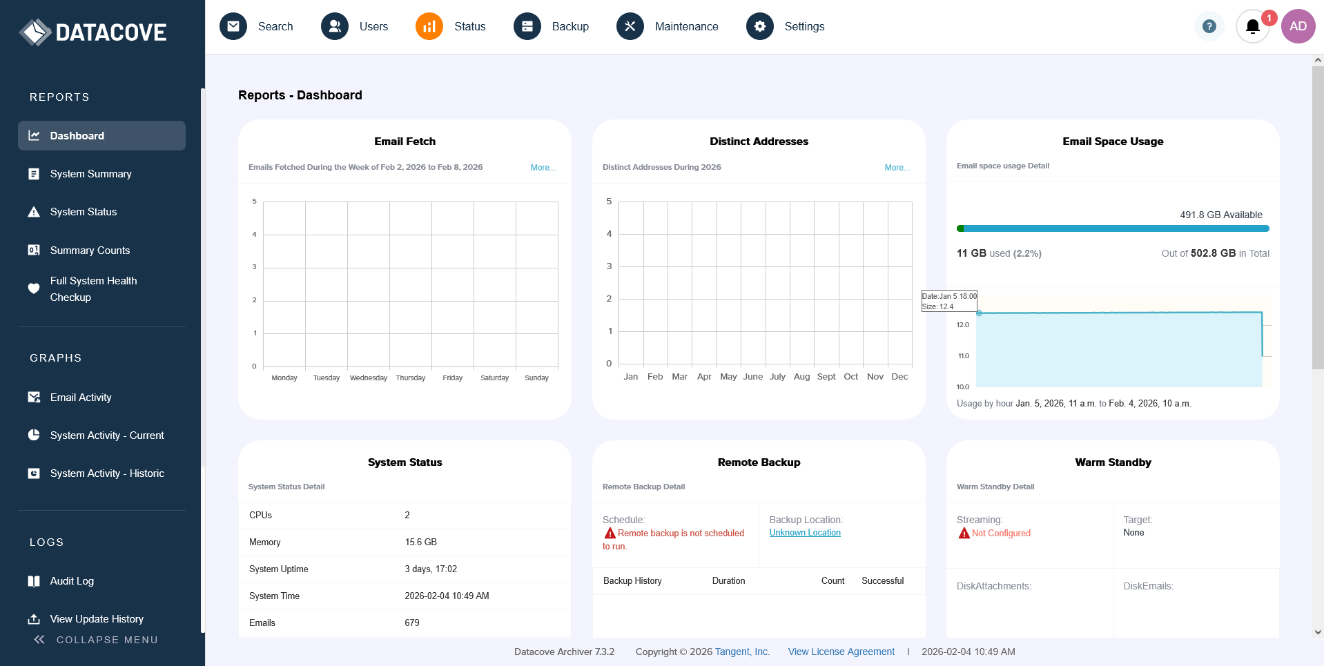 V7 is now available for all On-Premises Hardware Systems, On-Premises Virtual Systems and the DataCove Cloud Archiving Service and will be fully replacing all Version 6 (V6) systems (6.0 to 6.14 versions) as systems are modernized or upgraded over the next few years. The process to upgrade to V7 is more advanced than the usual software update; please see the bottom of this article for the different options available.