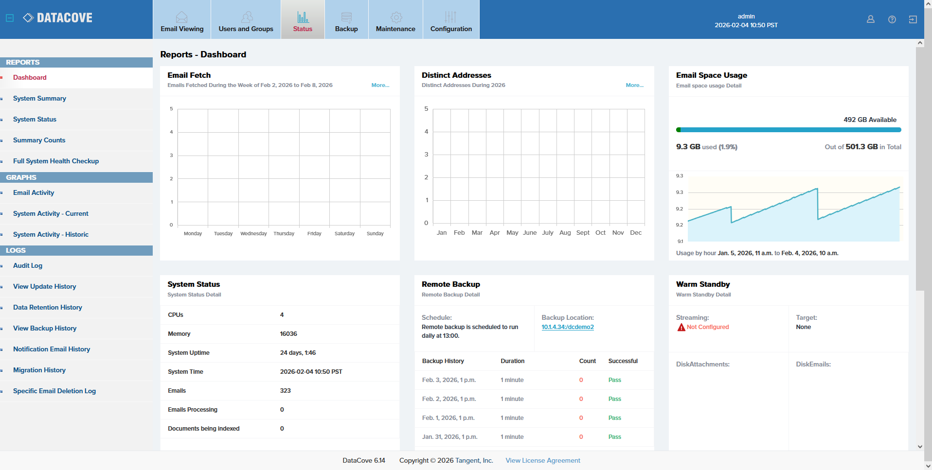 For clients with an on-premises Physical Server purchased during calendar year 2025: The system is eligible for a no-cost replacement and modernization to an equivalent V7 Physical Server. Tangent will build and ship a V7 system to your site and support your team through the migration. Old systems must be returned to Tangent after migration completes. Please contact DataCove Support to begin arranging your upgrade.